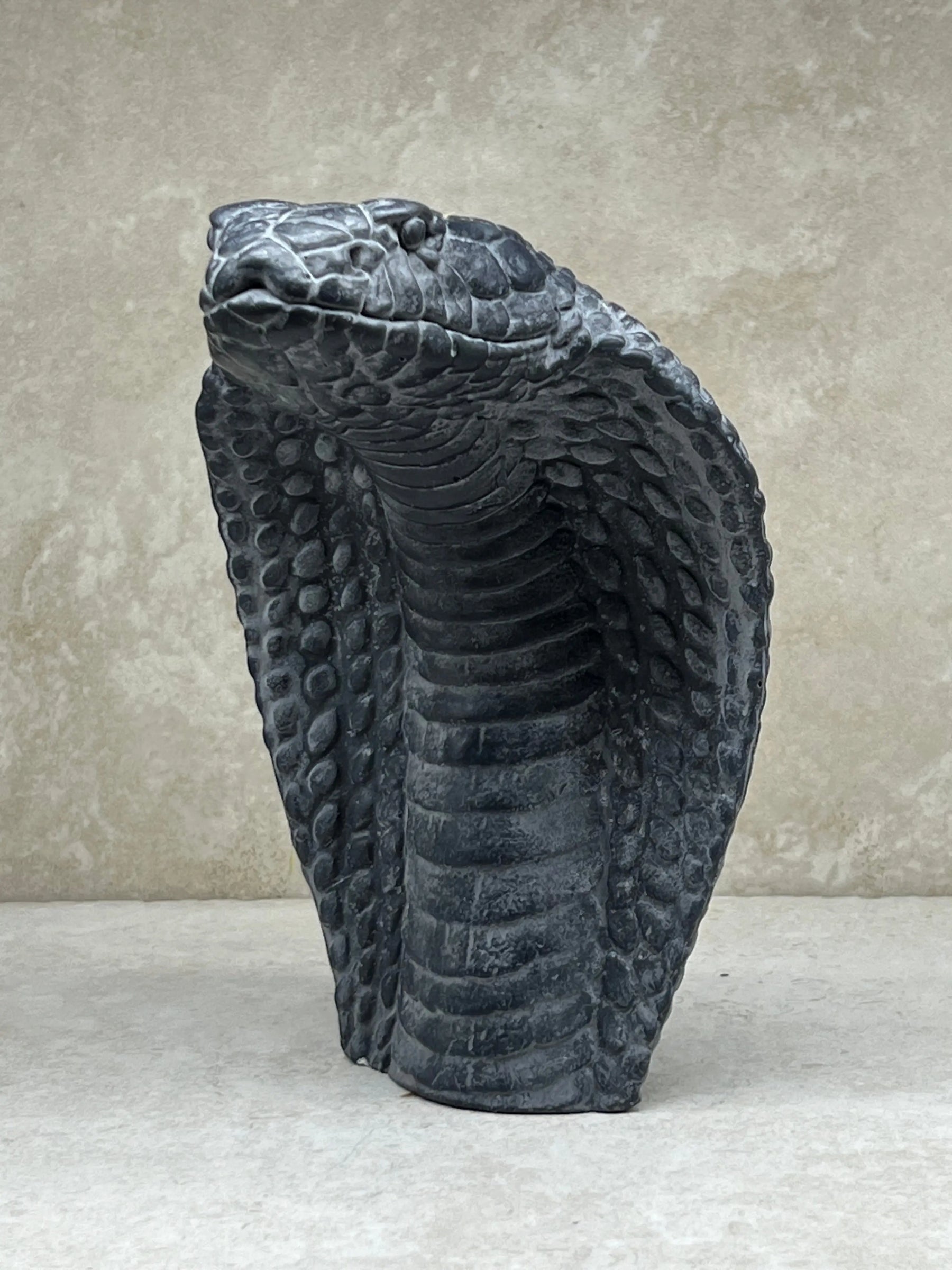 Bringing to you a realistic sculpture, capturing the unique scale pattern and majestic character of the venomous Cobra.Â