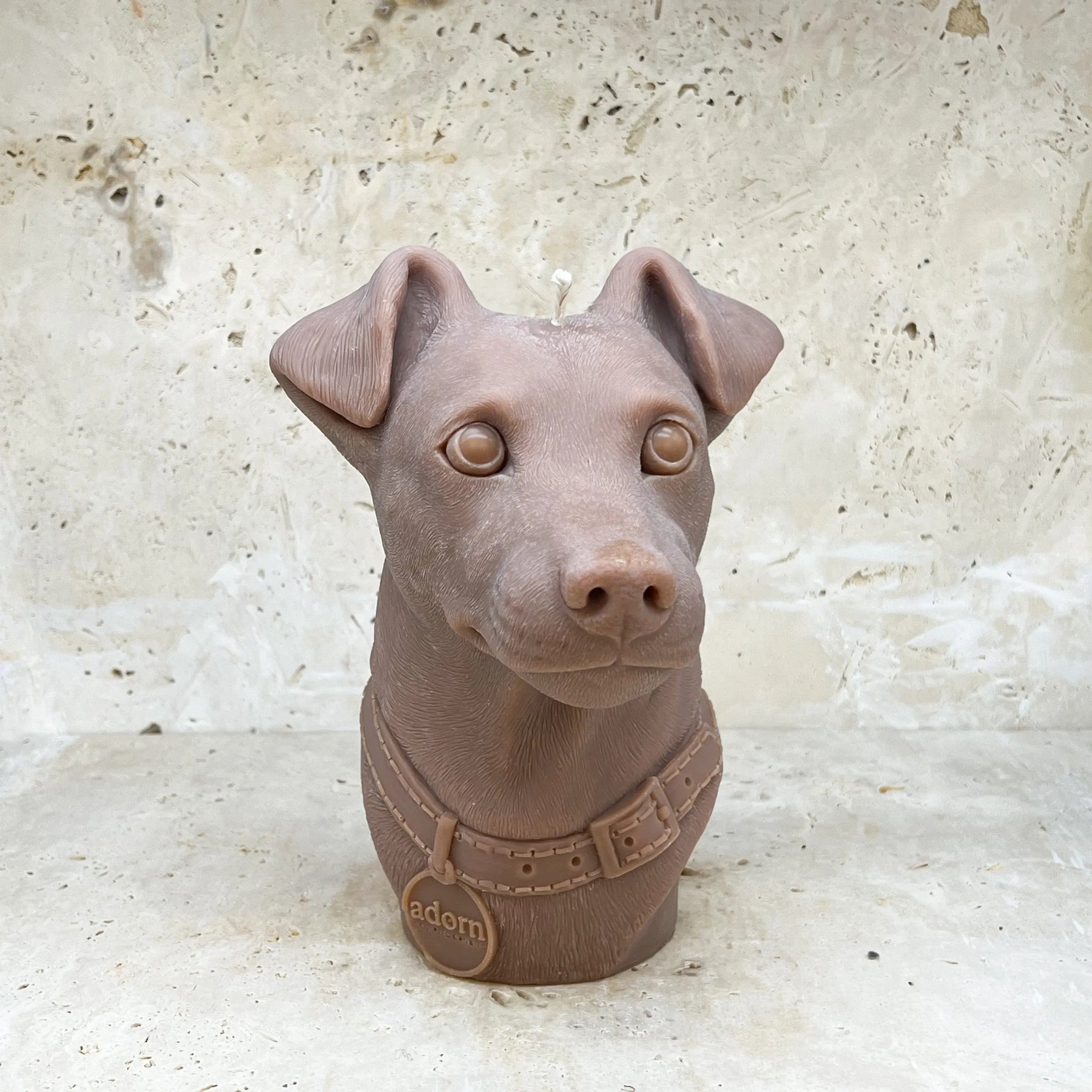 A hand-sculpted dog candle designed as decorative art, beautifully fragranced to scent your home without ever needing to be lit.