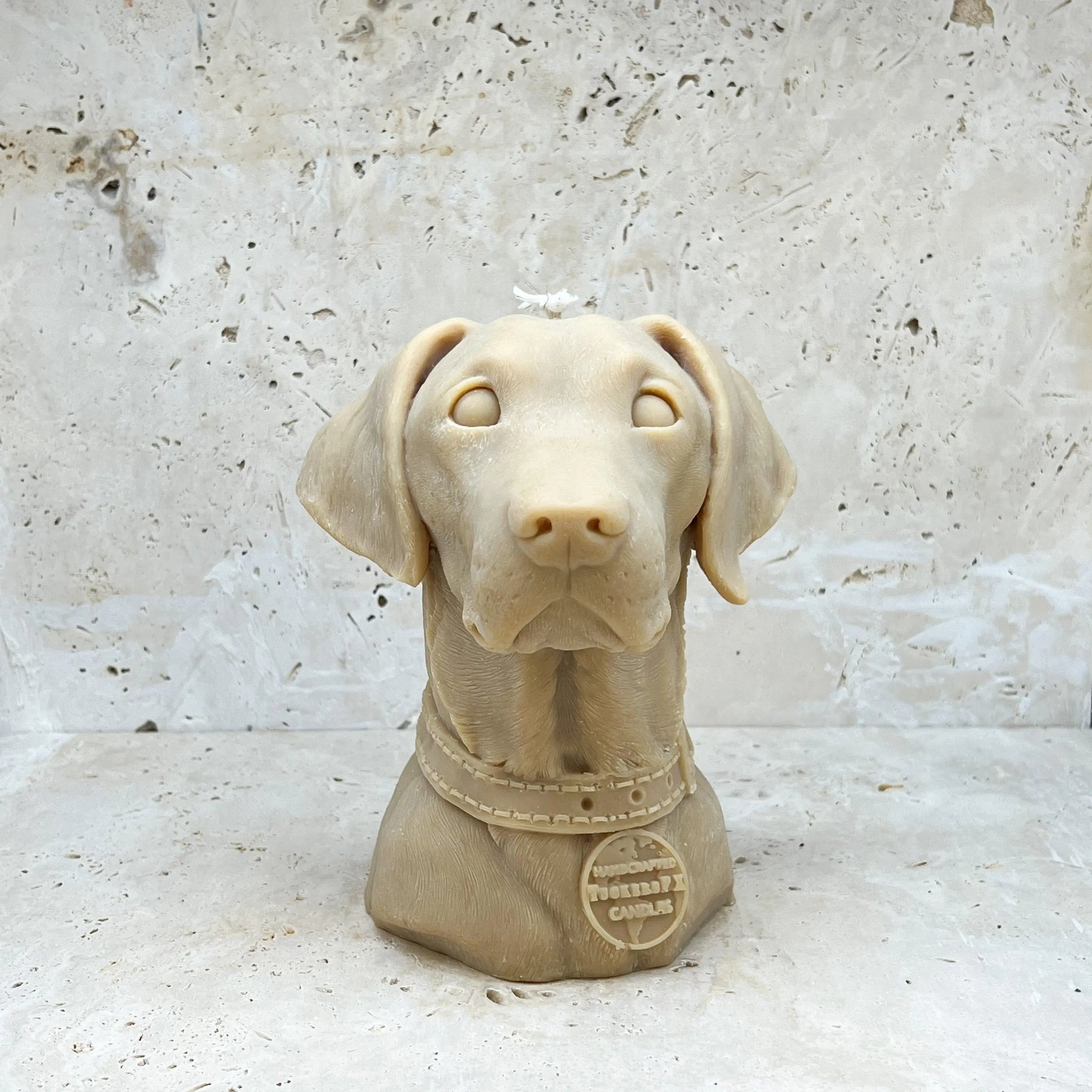A hand-sculpted dog candle designed as decorative art, beautifully fragranced to scent your home without ever needing to be lit.
